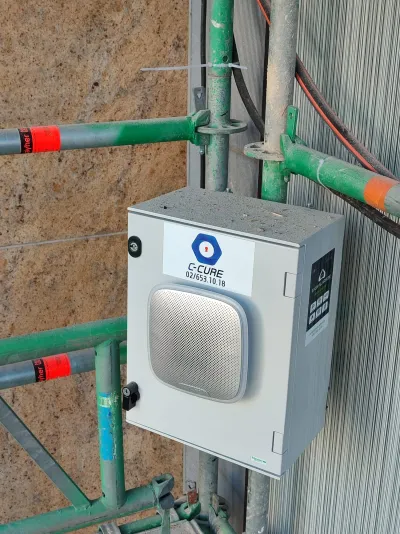 Krachtige buitensirene van 113 dB met LED-flits. Onmiddellijk en zichtbaar afschrikkend effect over de hele werfperimeter.